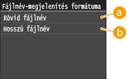 Válassza a következőt: <Rövid fájlnév> vagy <Hosszú fájlnév>