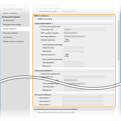 Az SNMPv3 protokollal robusztus biztonsági funkciókkal védett hálózati eszközfelügyeletet valósíthat meg. Az SNMPv3 konfigurálása előtt engedélyeznie kell az TLS protokollt a Távoli felhasználói felületen (