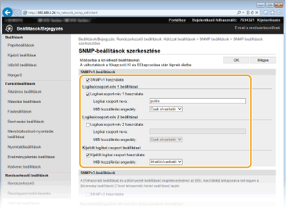 Ha nem kell módosítania az SNMPv1-beállításokat, akkor folytassa a következő lépéssel.