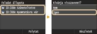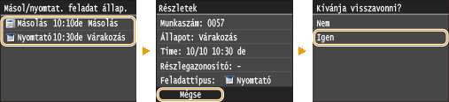 Megszakítás a Távoli felhasználói felület segítségévelA nyomtatás megszakítható a Távoli felhasználói felület [Feladat állapota] oldalán: A nyomtatott dokumentumok aktuális állapotának ellenőrzése