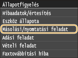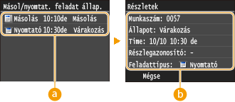![]() <Másol/nyomtat. feladat állap.>Megjeleníti a feldolgozás, másolás alatt lévő, illetve feldolgozásra váró dokumentumok listáját.