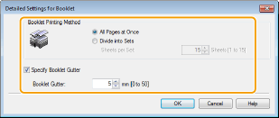 Kattintson a [Booklet] (Könyv) lehetőségre a részletes beállítások megadásához