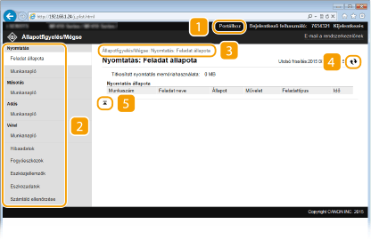 Megjeleníti a jelenleg nyomtatott dokumentumok állapotát, valamint a korábban nyomtatott, másolt, küldött és fogadott dokumentumokat. A készülék állapotát is ellenőrizheti.