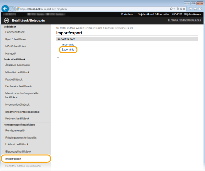 A címjegyzék címeit és a készülék beállításait exportálhatja és számítógépre mentheti. A címjegyzékadatok exportálhatók eszközkonfigurációs információs fájlként (*.dcm) vagy Canon címjegyzék fájlként (*.abk). Az eszközkonfigurációs információs fájltípus kiválasztásával biztonsági másolatként mentheti az adatokat, illetve a címjegyzék bejegyzéseit azonos típusú készülékre másolhatja. A Canon címjegyzék fájltípus kiválasztása esetén a címjegyzék címeit a faxillesztőprogramra vagy egy másik típusú készülékre másolhatja. Javasoljuk, hogy rendszeresen készítsen biztonsági mentést a fontos beállításokról.