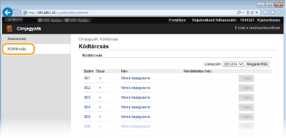 A számítógép használatával címeket jegyezhet be a készülék Címjegyzékébe, vagy szerkesztheti azokat. Itt beállíthatja a megosztott mappát vagy az FTP-kiszolgálót is.