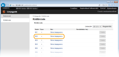 A bejegyzett címeket a hozzájuk tartozó [Törlés] gombra kattintva törölheti.