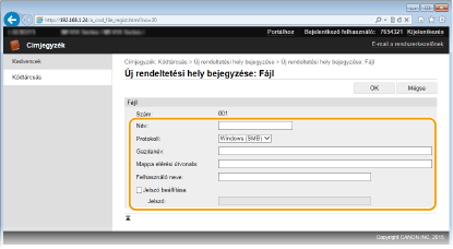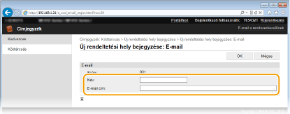 Címek bejegyzése a Címjegyzékbe a Távoli felhasználói felületről