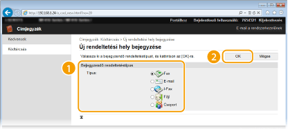 Válassza a [Bejegyzendő rendeltetéstípus] lehetőséget, és kattintson az [OK] gombra.