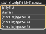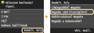 Ha irodájába telepítettek LDAP-kiszolgálót, akkor a kiszolgálóra bejegyzett célhelyeket is használhatja. A célhelyek megadásához nyissa meg készülékéről az LDAP-kiszolgálót, és keresse meg a kívánt célhelyeket.