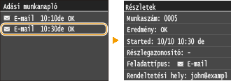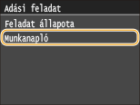 Ha a <Munkanapló megjelenítése> beállítás értéke <Ki>, akkor az elküldött dokumentumok naplói nem tekinthetők meg. Munkanapló megjelenítése