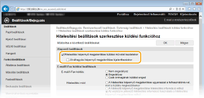 [Hitelesítési beállítások küldési funkcióhoz] gombra.