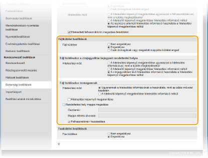 Ha az [Csak önmagának vagy megadott mappába küldést enged] lehetőség van megadva a [Fájl küldése]