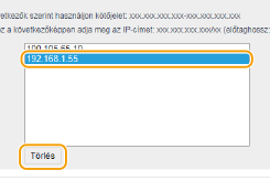Válasszon egy IP-címet, és kattintson az [Törlés] gombra.