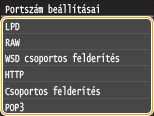 <LPD>/<RAW>/<WSD csoportos felderítés> Nyomtatási protokollok és WSD-funkciók konfigurálása
