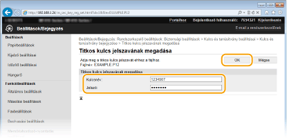 Adja meg a kulcspár nevét és a jelszót, majd kattintson az [OK] gombra.