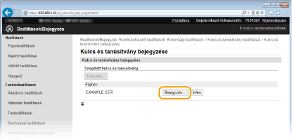 Kattintson a [Kulcs és tanúsítvány bejegyzése] vagy [CA tanúsítvány bejegyzése] lehetőségre.