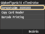 Nyomja meg a  (  ) gombot, majd érintse meg a <Gépkonfiguráció ellenőrzése> gombot.
