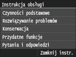 Jego naciśnięcie powoduje wyświetlenie informacji dotyczących obsługi urządzenia oraz przyczyn błędów i dostępnych rozwiązań.