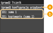) zostanie wyświetlony ekran <Sprawdź licznik>. Na tym ekranie zostaną wyświetlone liczniki wydruków, a także numer seryjny urządzenia i jego konfiguracja.