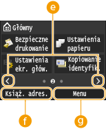 <Książ. adres.>Pozwala zapisać lub edytować odbiorców wiadomości e-mail i faksów. Pozwala również wyświetlić zapisanych odbiorców podczas wysyłania wiadomości e-mail lub faksu.Rejestrowanie w książce adresowej