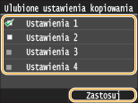 Zaznacz pole wyboru dla wszystkich ustawień, które mają zostać wyświetlone na ekranie Główny i dotknij przycisku <Zastosuj>.