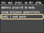 Jeśli ekran Główny został już zapełniony i nie można zapisać nowych ustawień, należy za pomocą funkcji <Ustawienia ekr. głów.> usunąć zapisane przyciski i puste miejsca.