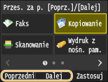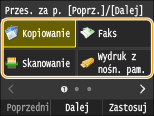 Dłuższe dotknięcie <Poprzedni>/<Dalej> przesuwa przycisk w sposób ciągły.