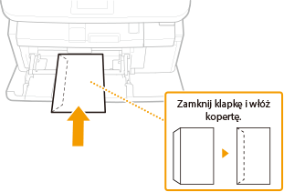 Przed załadowaniem kopert należy wygładzić możliwe zagięcia. Należy również zwrócić uwagę na umieszczenie ich we właściwej orientacji i odpowiednią stroną do góry. Koperty nie mogą być załadowane do szuflady na papier.