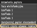 Listę ustawień formatu papieru można ograniczyć do wyłącznie często używanych formatów papieru.