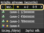 Często używanych odbiorców można zarejestrować w książce adresowej, co ułatwia ich wybieranie. Odbiorców można wyszukiwać alfabetycznie z list w książce adresowej lub poprzez wprowadzenie trzycyfrowego numeru (numeru wybierania kodowego). Określanie odbiorców można przyspieszyć, używając następujących opcji.