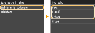 <Ustawienia faksu>. Jednak ustawienia sprecyzowane przy użyciu funkcji <Książ. adres.> są aktywne w odniesieniu do szczegółowych ustawień dotyczących odbiorców zarejestrowanych w książce adresowej. |