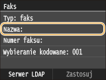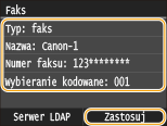 W polu odbiorcy pojawi się nazwa użytkownika, numer faksu lub adres e-mail wybranego użytkownika zarejestrowany na serwerze LDAP.