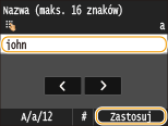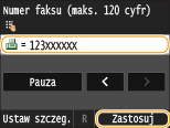 Za pomocą przycisków numerycznych wprowadź łańcuch wyszukiwania i dotknij przycisku <Zastosuj>.