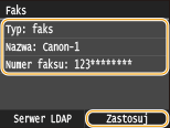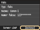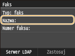 W polu odbiorcy pojawi się nazwa użytkownika, numer faksu lub adres e-mail wybranego użytkownika zarejestrowany na serwerze LDAP.