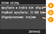 Możesz również ustawić ustawienia <Wysyłanie w trybie ECM> i <Prędkość wysyłania> z poziomu <Menu>