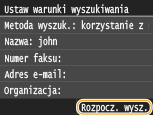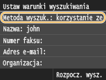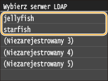 ![]() Jeśli po dotknięciu przycisku <Rozpocz. wysz.> pojawia się ekran uwierzytelnienia, wprowadź nazwę użytkownika i hasło zapisane na serwerze LDAP i dotknij przycisku <Zastosuj>. Rejestracja serwera LDAP