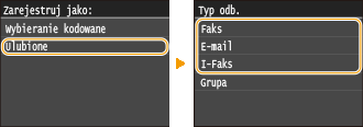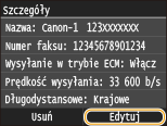 <Ustawienia faksu>. Jednak ustawienia sprecyzowane przy użyciu funkcji <Książ. adres.> są aktywne w odniesieniu do szczegółowych ustawień dotyczących odbiorców zarejestrowanych w książce adresowej. |