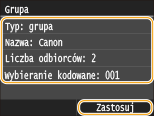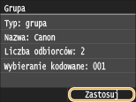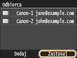 Powtarzaj kroki od 7 do 9, aż zarejestrujesz wszystkich odbiorców, a następnie dotknij przycisku <Zastosuj>.