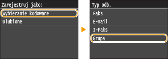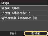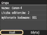 Kilku odbiorców można połączyć w grupę. Można określić maksymalnie 299 odbiorców (100 w przypadku odbiorców e-mail) w jednej grupie. Po zarejestrowaniu grupy możliwe jest edytowanie lub usuwanie odbiorców.