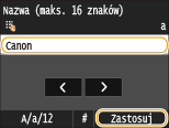 Wprowadź nazwę za pomocą przycisków numerycznych i dotknij przycisku <Zastosuj>.