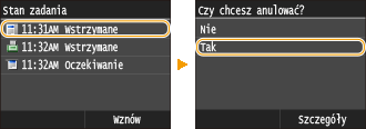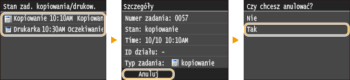 Sprawdzić stan zadania kopiowania przed anulowaniem