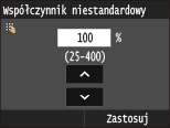 lub klawiszy numerycznych wprowadź współczynnik kopiowania, po czym dotknij przycisku <Zastosuj>. Można ustawić współczynnik kopiowania z zakresu od 25 do 400% z dokładnością do 1%.
