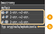 <Opcja <Dwustronny> nie jest dostępna w przypadku korzystania z funkcji <Kopiow. identyf.>.