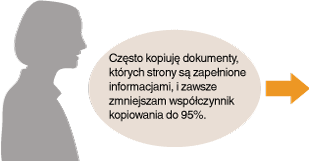 Wartość współczynnika kopiowania należy ustawić na 95% i zarejestrować to ustawienie jako domyślne. Od tej pory można wykonywać kopie, nie zmieniając współczynnika kopiowania. Zmiana ustawień domyślnych