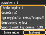 Po wywołaniu zestawu ustawień można również zmienić ustawienia kopiowania w zależności od potrzeb.