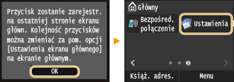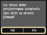 W przypadku wybrania opcji <Tak> zostanie wyświetlony komunikat. Zapoznaj się z jego treścią, a następnie dotknij przycisku <OK>. Zestaw zapisanych ustawień zostanie dodany do ekranu Główny jako przycisk skrótu.