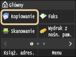 Możliwe jest zapisanie maksymalnie czterech kombinacji najczęściej używanych ustawień kopiowania. Wybranie zapisanego ustawienia, gdy jest ono potrzebne, eliminuje konieczność konfiguracji tych samych ustawień za każdym razem, gdy wykonywane są kopie. Przykładowo, przy częstym ustalaniu liczby kopii na 5 należy ustawić opcję <Usuń obramowanie> na tryb <Włącz>, a podczas kopiowania zwiększyć poziom ostrości. Można również wyświetlić ustawienia jako przyciski skrótów na ekranie Główny.