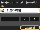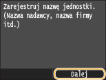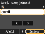 Wprowadź nazwę jednostki (np. nazwę użytkownika lub firmy) za pomocą klawiszy numerycznych i dotknij przycisku <Zastosuj>.