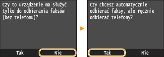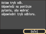 Aby wybrać tryb odbioru, dotknij opcji <Tak> lub <Nie>.
