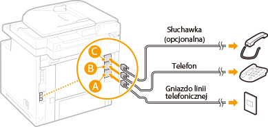 W przypadku podłączania zewnętrznego aparatu telefonicznego z funkcją faksu ustaw telefon na ręczne odbieranie faksów.